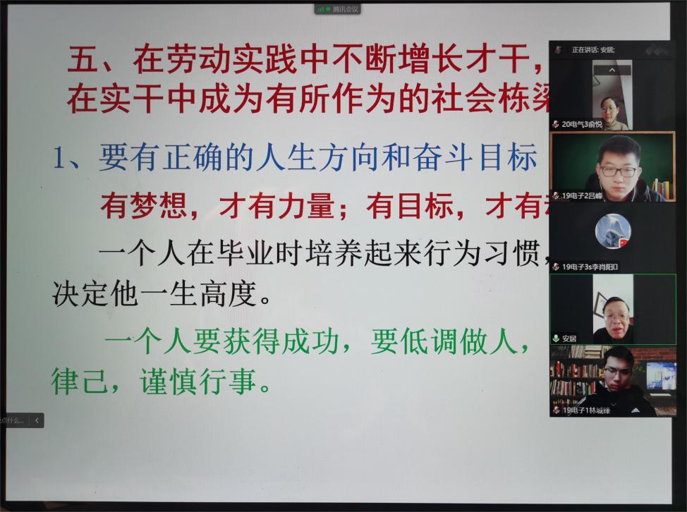 为弘扬劳动精神,加强劳动教育,引导学生热爱劳动、崇尚劳动,2022年12月11日下午,电气信息工程学院在线上举办了一场题为《劳动光荣,实干兴邦》的主题劳动教育讲座。讲座由电气信息工程学院关工委常务副主任吴建明老师主讲,我院新发展学生党员及发展对象参加此次讲座。