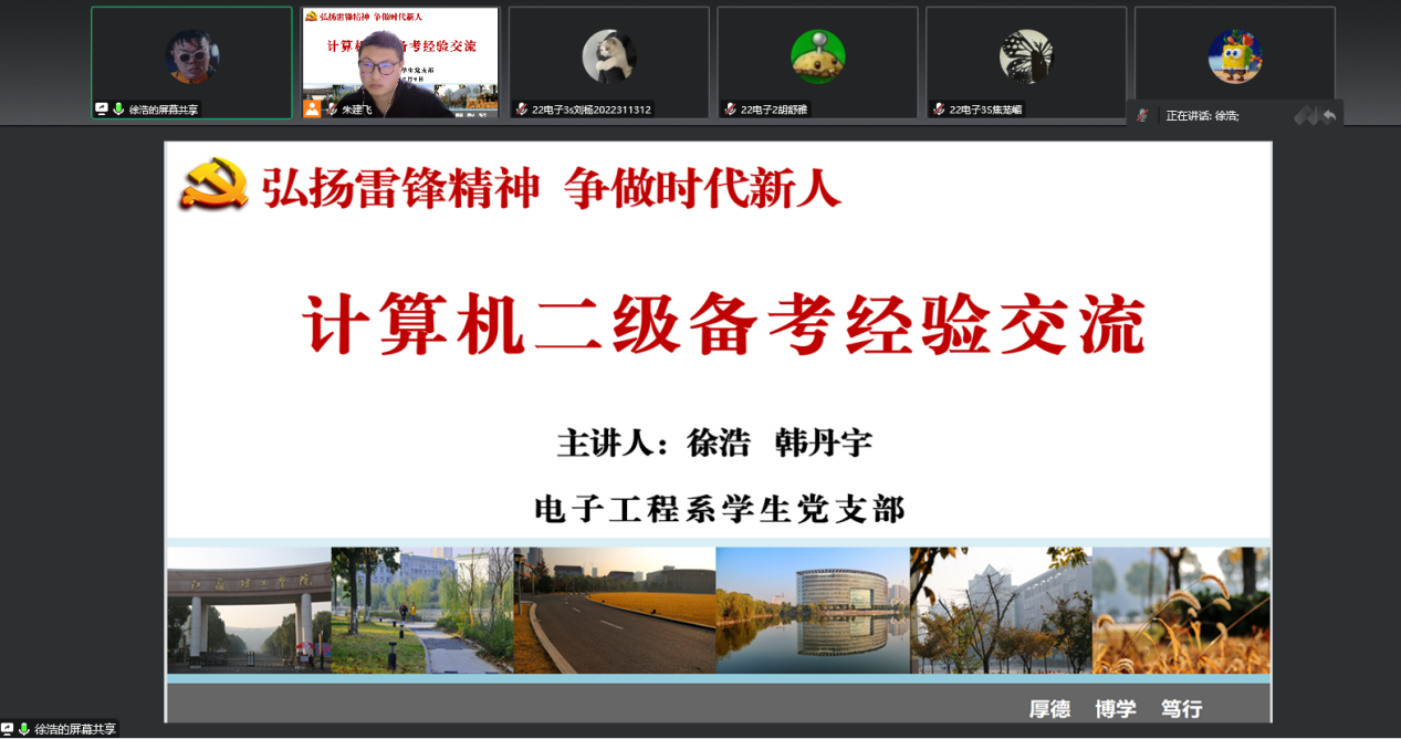 为进一步传承和弘扬雷锋精神,扎实推进“我为群众办实事”实践活动,2月9日下午,电气信息工程学院电子工程系学生党支部举办“弘扬雷锋精神,争做时代新人”之计算机二级备考经验交流活动。本次活动面向电子支部入党积极分子和入党申请人,党员代表徐浩、韩丹宇担任主讲人,活动由支部书记朱建飞主持。