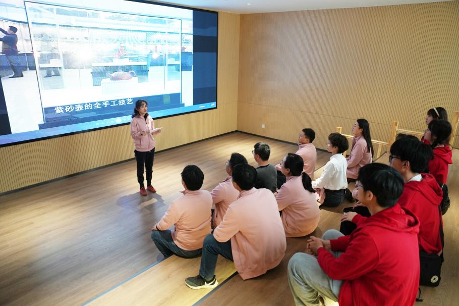 步入宜兴陶瓷博物馆,全体党员依次参观古陶、名人名作、紫砂、世界陶瓷、国内陶瓷等十六个展厅,在欣赏一件件精美绝伦的陶瓷艺术品的同时,也深入了解这些作品背后的故事。沉浸在艺术的海洋,电气信息工程学院副书记、副院长卢丹为大家上了一堂实景党课,分享了中国工艺美术大师、紫砂宗师顾景舟先生制作革命壶的故事。顾景舟先生自喻为艺海一舟,在制壶的60多年里深入钻研紫砂陶瓷相关工艺知识,成就极高,技巧精湛,取材甚广。顾先生不仅为一代宗师,且桃李满天下,在顾先生的教导下,他的徒弟们和他一样,从制作工具、选泥锤泥开始,苦练过硬本领,各个都有出色的成就。党员们为顾先生精湛的技艺折服,更为他极致追求的大国工匠精神所感染。纷纷表示要遨游学海,在自己的专业中沉下心来学、静下心来思、稳下心来干,向大国工匠看齐。