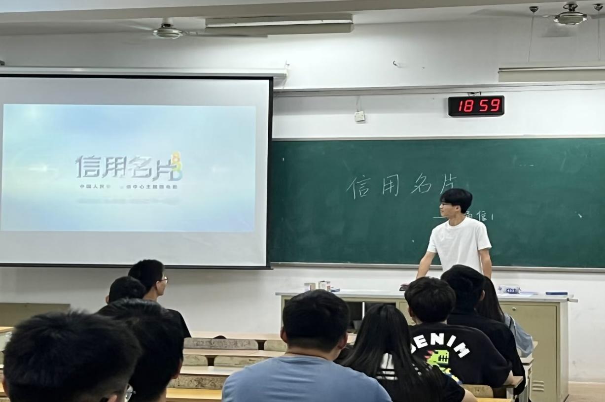 活动期间,由各班生活委员组织班级观看《信用名片》系列短视频,视频旨在大力推进诚信教育、金融知识普及教育,引导广大青年学生珍爱信用、不辜负社会信任,提高学生征信意识、金融意识、风险意识、法律意识,增强当代大学生的责任感,帮助他们树立正确的消费观、荣辱观、价值观。