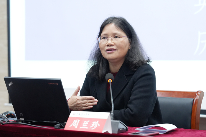 周兰珍通过对三个哲学问题的剖析与深思,引导学生学有所思、学有所获、学有所得、学有所成、学有担当。在“我是谁”这个问题上,讲述人的本质是全部社会关系的总和,带领学生们思考时空坐标中的自己,思考个体的小我与我们的大我之间的关系,并指出学生要自觉文明精神、野蛮体魄;在“我往哪里去”这个问题上,引导学生思考如何点亮大学生活,成完全之人格:德智体美劳的全面发展,增强做中国人的志气、骨气、底气,并强调要立大志、明大德、担大任、成大才;在“我该如何去”这个问题上,强调天下之事困于想而破于行,从“我被”到“我在”到“我爱”,用行动成就人生梦想,用小习惯成就人生大梦想。
