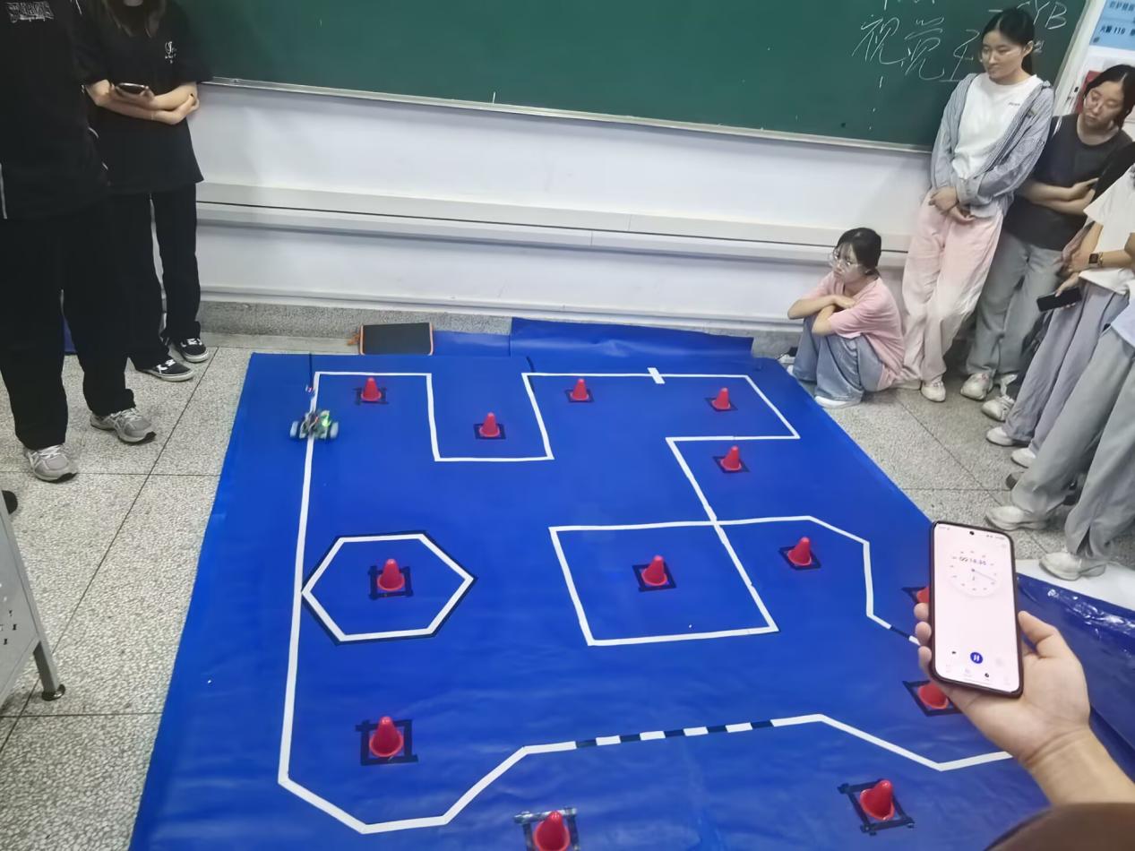 决赛环节,参赛队伍进行更加激烈的比拼,选手们聚精会神每个动作都准确无比,现场紧张有序,同时赛事设立观众区,有专业教师进行同步讲解,观赏性十足。赛场上,各组别智能车在精心设计的赛道上展开激烈角逐。电磁组的智能车沿着电磁引导轨迹稳健前行,车身保持完美平衡;视觉组的参赛车辆通过摄像头精准识别赛道标记,展现出卓越的自主导航能力;精准组的智能车在规定时间内完成停车、转弯、避障等一系列复杂动作,每一个环节都彰显着参赛队伍的技术实力。