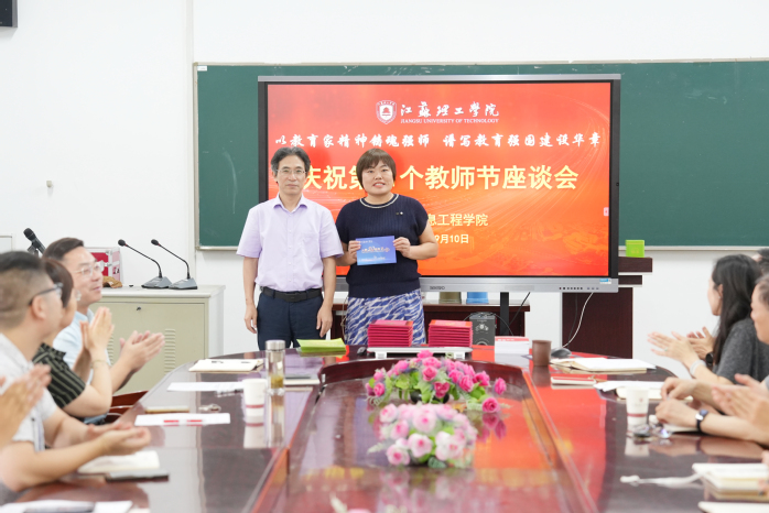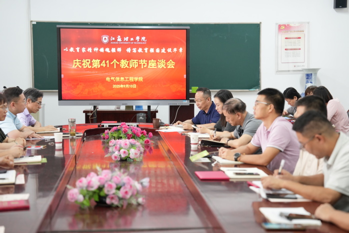 9月10日下午,电气信息工程学院庆祝第41个教师节座谈会在笃行楼 309 会议室举行。会议主题为“以教育家精神铸魂强师,谱写教育强国建设华章”。学院领导、关工委老同志、教师代表40余人齐聚一堂,共庆教师节,座谈会由党委副书记、副院长卢丹主持。