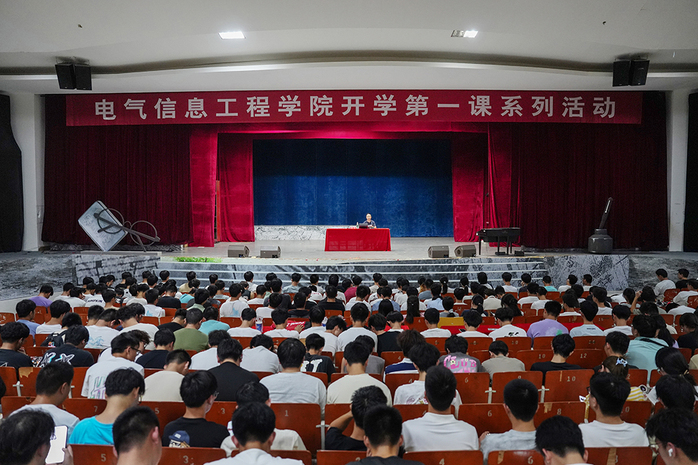 为深入学习贯彻习近平新时代中国特色社会主义思想,全面落实立德树人根本任务,引导广大青年学子坚定理想信念、厚植爱国情怀、砥砺奋斗精神,以昂扬姿态开启新学期新征程。9月25日晚,电气信息工程学院在西苑大礼堂开展了思政教育第一课和入党启蒙教育活动。活动由电气信息工程学院党委书记高凯、专职组织员李雪飞主讲,全体25级新生参与。