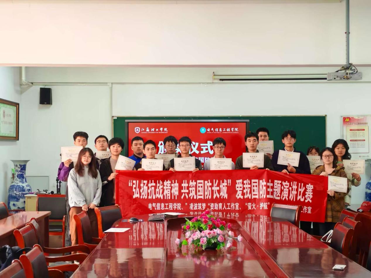 为深切缅怀革命先烈,弘扬伟大抗战精神,激发当代大学生的家国情怀与国防责任感,电气信息工程学院于近期开展了2025年“弘扬抗战精神,共筑国防长城”爱我国防主题演讲比赛,“凌波筑梦”资助育人工作室与“萤火·护航”大学生思想引领工作室联合指导。本次活动经过层层选拔和评选,于11月3日在60-309教室举行颁奖仪式。