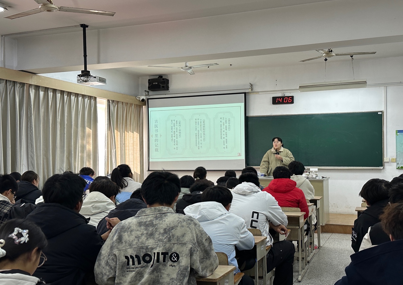 活动中最吸引学生的是“中医体质辨识”环节。陈莹详细解读了平和质、气虚质、阳虚质、阴虚质、痰湿质、湿热质、血瘀质、气郁质、特禀质九种体质的特点及调养建议: