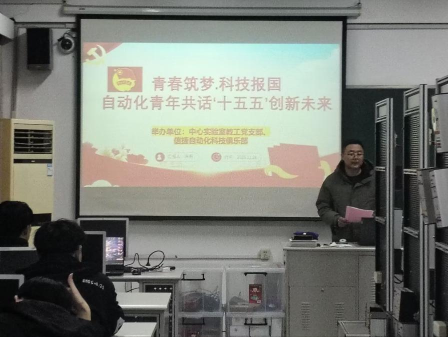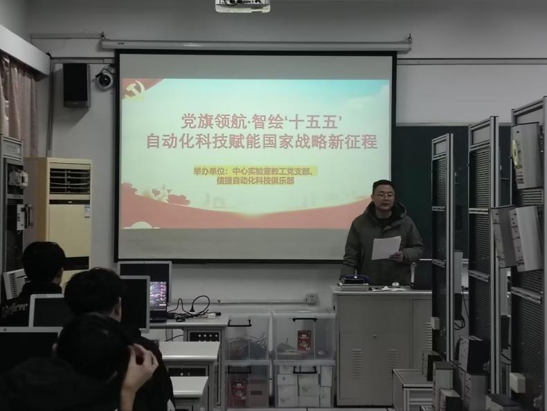 为进一步推动党建与共青团工作深度交融、协同共进,充分发挥党建带团建引领作用,驱动科技创新实践,助力青年学子在专业领域精进技能、在思想层面厚植使命担当,近日,电气信息工程学院中心实验室教工党支部携手信捷自动化科技俱乐部,于60号楼421教室共同举办了一场别开生面的联合活动。此次活动将党旗领航・智绘“十五五”主题党日活动,与“青春筑梦・科技报国”团日活动有机融合。活动由中心实验室教工党支部与信捷自动化科技俱乐部的党员谢鹏同志主持,支部党员、俱乐部团员以及青年学子代表共20余人参与。