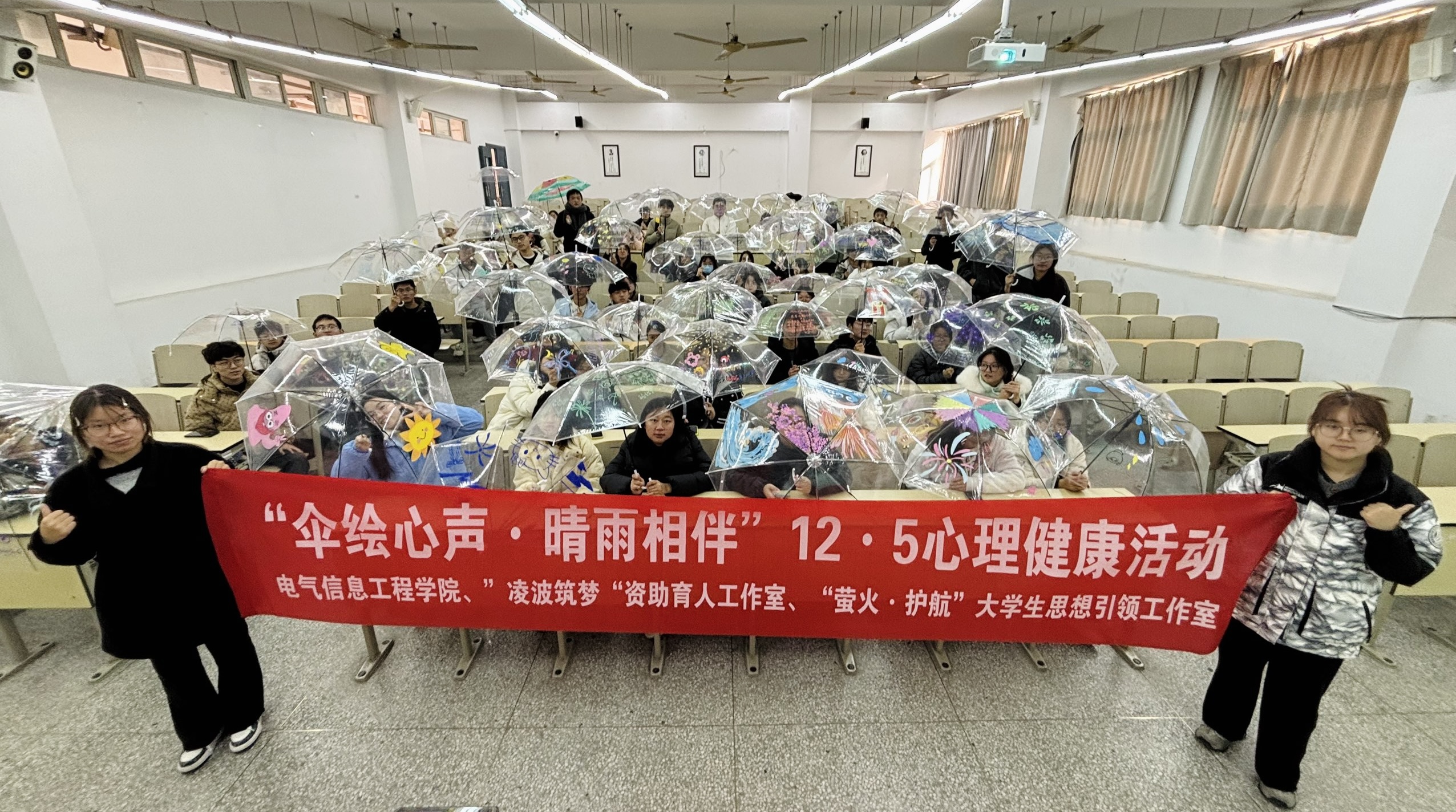 为深入贯彻落实教育部关于加强大学生心理健康教育工作的要求,切实提升大学生心理健康素养,营造阳光和谐的校园氛围,电气信息工程学院于12月5日在64-103教室成功举办了“伞绘心声,晴雨相伴”12·5心理健康活动。